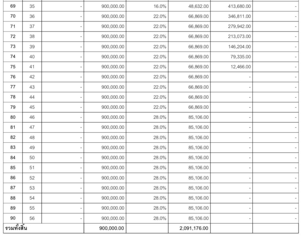 ตัวอย่าง : สรุปผลประโยชน์ตลอดสัญญา